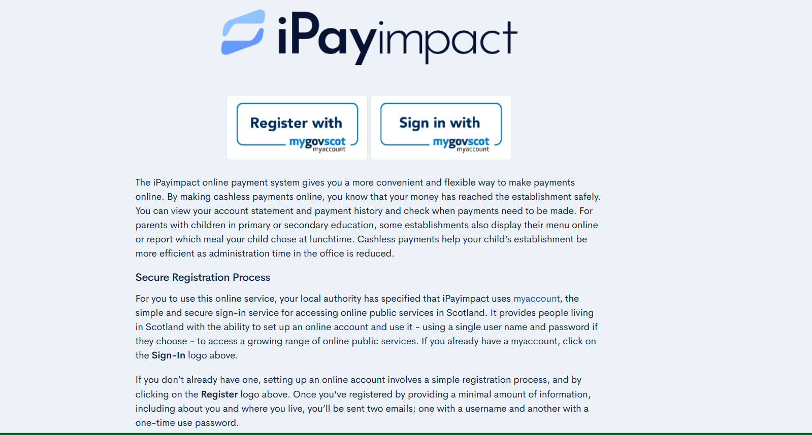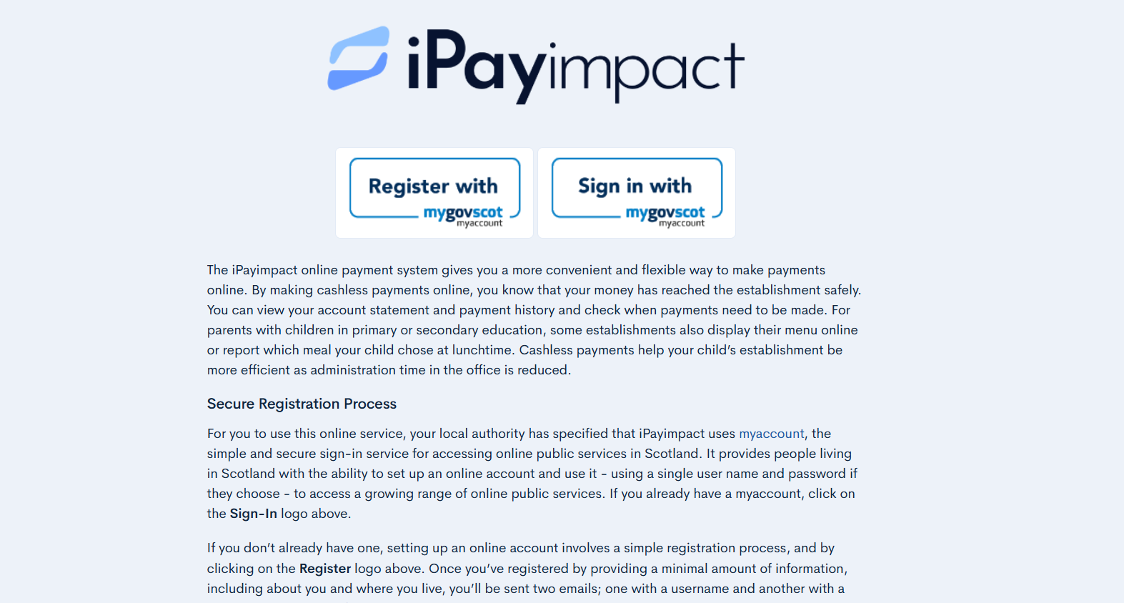 Welcome to iPayimpact this is the sight you will use to top up your card to get your food and drinks at the high school.